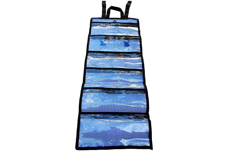 This 6 pocket Lure Bag has fully enclosed pockets with Velcro right along the opening. The back of the bag is constructed from material to allow the bag to breath and also allows the bag to be hosed down at the end of the days fishing. It is made from Very High Quality material.