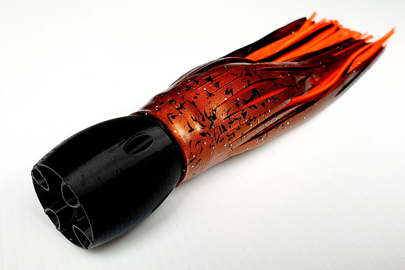 The head is 3d printed with the latest technology and designs not normally possible on a trolling lure.