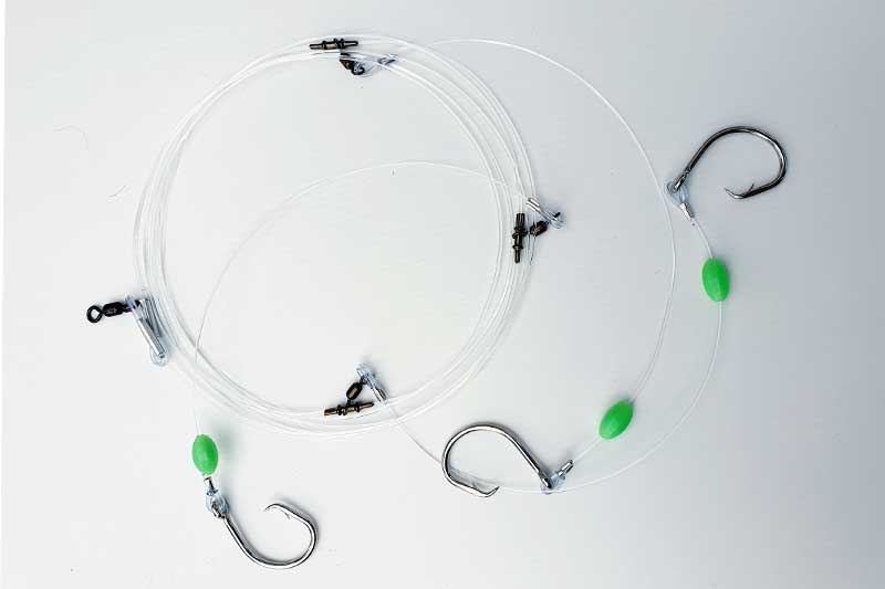 It consists of 2m of 200lb mainline with 100lb droppers. Each dropper is loaded with a 12/0 sports circle hook. These hooks are deadly sharp and light enough to penetrate, without compromising on strength.