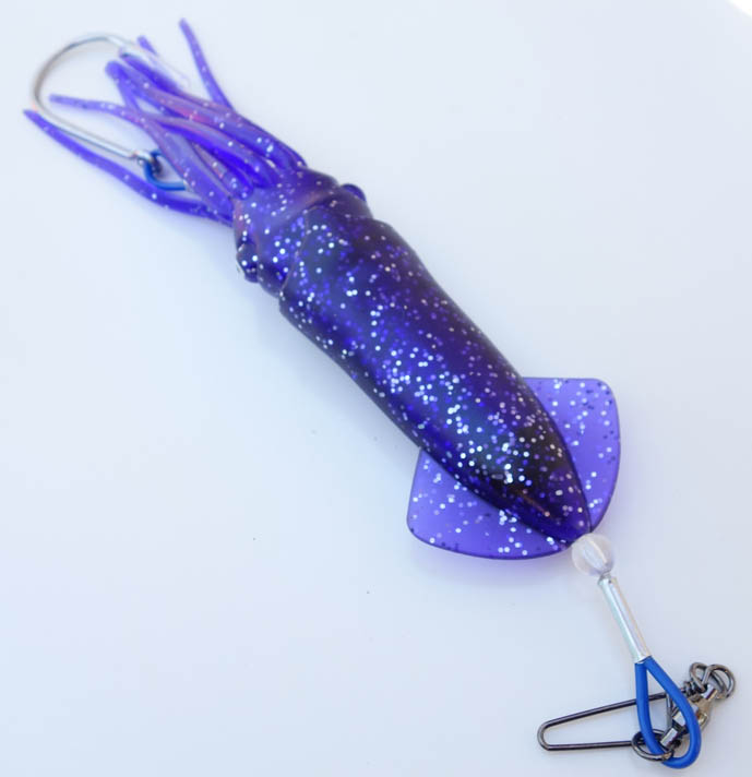 A 9" Rubber squid rigged with a snap swivel so it's fast to attach and detach from your rig. At the rear is a 10/0 ultra sharp Razorpoint hook.