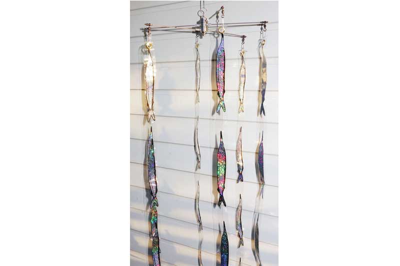 18" Collapsible Titanium 6 armed Dredge bar, rigged with 6 holographic ballyhoo strips each containing 4 fish. (total 24 fish). The strips are double laminated with towing eye grommet & clip for easy attachment. Each strip is 110cm in length.