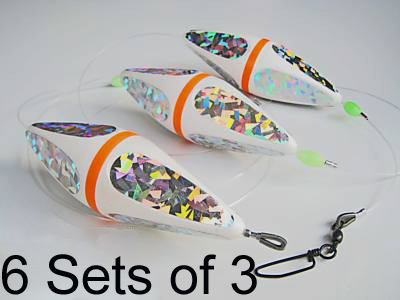 This set of 3 Prism Floats is one the best teasers available. In this set you will receive 6 sets of 3 floats. (total 18 floats rigged in 3's).